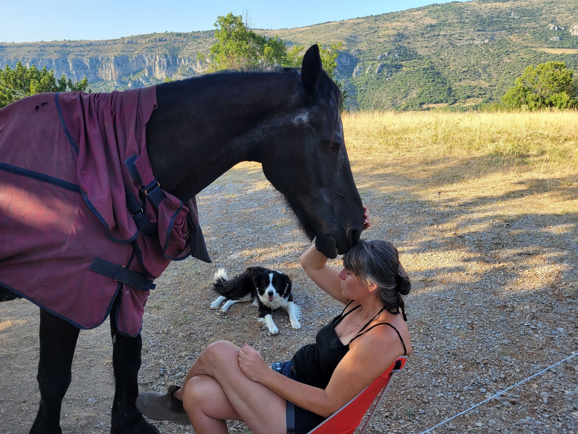 We zaten op een prachtige weide, ik gaf mijn aandacht aan het gezoem van de bijtjes en de geur van lavendel die de lucht vulde. Plots voelde ik de warme zachte adem van een paard boven mijn hoofd